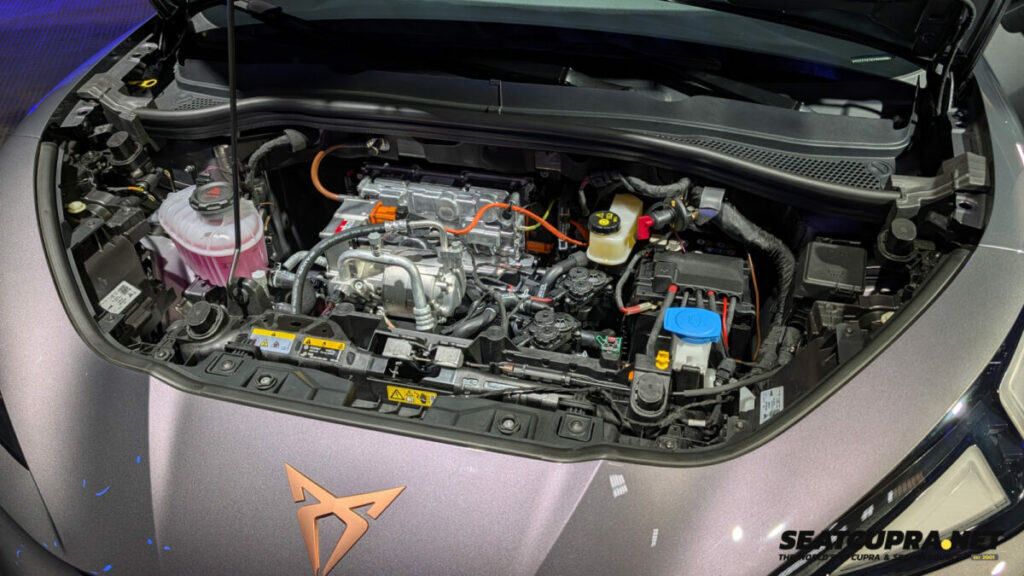 La versión tope de gama sube la potencia hasta 226 CV (166 kW) manteniendo los 290 Nm de par y la misma batería NMC de 52 kWh útiles. Acelera de 0 a 100 km/h en 6,8 segundos y alcanza 175 km/h de velocidad máxima, frente a los 160 km/h del resto de la gama. Es la versión más deportiva y viene con equipamiento específico: diferencial electrónico autoblocante (VAQ), suspensión DCC Sport, asientos CUPBucket y llantas de 19 pulgadas con neumáticos de 235 mm.